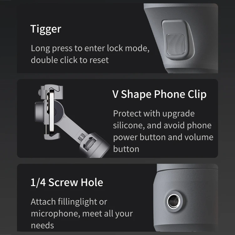 Combo visoin: Capture 5 gimbal x 1, tripod x 1, storage bag x 1, user manual x 1, tracking module x 1, data cable x 1